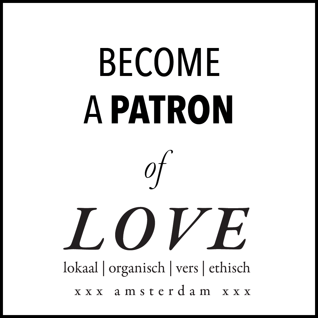 The Patron of LOVE program, a unique initiative brought to you by The Brothel of Amsterdam and The Positive Unknown. As a Patron of LOVE, you’re joining a community committed to embracing local, organic, and ethical food and produce. Our primary ingredients are sourced within a 30 km radius of Amsterdam, ensuring the freshest and most sustainable options.